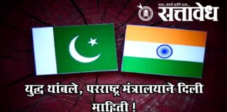 Team Sattavedh War between India and Pakistan has stopped, Ministry of External Affairs informed : भारतीय सैन्याने ५० पेक्षा जास्त ड्रोन पाडले भारताने ऑपरेशन सिंदूर राबवल्यानंतर भारत आणि पाकिस्तानध्ये युद्ध भडकले होते. जोरदार हल्ले – प्रतिहल्ले सुरू होते. मात्र आज (१० मे) सायंकाळी ५ वाजता युद्धविराम झाल्याची घोषणा करण्यात आली. त्यामुळे काहीसा का होईना तणाव … Continue reading India – Pakistan : युद्ध थांबले, परराष्ट्र मंत्रालयाने दिली माहिती !