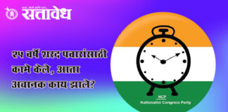 Team Sattavedh Senior leader from nagpur rural resigns from party : राष्ट्रवादी काँग्रेसच्या नेत्याचा राजीनामा, कोणत्या पक्षात जाणार? Nagpur १९९९ पासून म्हणजे गेली २५ वर्षे शरद पवारांसाठी काम केल्यानंतर अचानक पक्षाला सोडचिठ्ठी देण्याचा निर्णय नेत्याने घेतला. आता अडिच दशकं एकनिष्ठ राहिल्यानंतर अचानक एका दिवसात असे काय झाले? असा प्रश्न उपस्थित होत आहे. स्थानिक स्वराज्य संस्थांच्या … Continue reading NCP Sharad Pawar : २५ वर्षे शरद पवारांसाठी कामे केले, आता अचानक काय झाले?