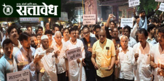 Team Sattavedh Congress holds candle march in Akola : लोकशाहीचे रक्षण करण्यासाठी लढा सुरू ठेवण्याचा निर्धार Akola मतदार यादीतील कथित फेरफार व गैरप्रकारांविरोधात अकोला महानगर काँग्रेस कमिटीच्या वतीने गुरुवारी सायंकाळी भव्य कॅन्डल मार्च मोर्चाचे आयोजन करण्यात आले. लोकसभेतील विरोधी पक्षनेते व काँग्रेसचे ज्येष्ठ नेते खा. राहुल गांधी यांनी अलीकडेच पत्रकार परिषदेतून मतदार यादीतील घोटाळ्याचा मुद्दा … Continue reading Vote Theft : ‘मतदान चोर, खुर्ची सोड’, काँग्रेसचा कॅन्डल मार्च मोर्चा