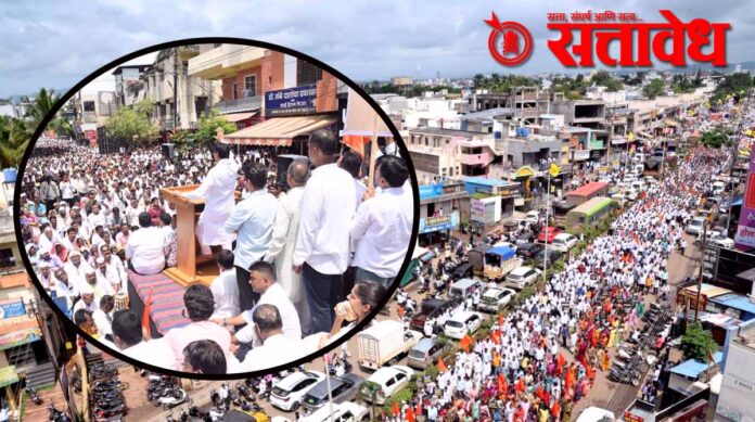 SANGAMNER काँग्रेस नेते बाळासाहेब थोरात यांना मारण्याची धमकी देणाऱ्या तथाकथित संग्राम भंडारे याचा निषेध करण्यासाठी संगमनेर तालुका एकवटला. हजारो नागरिकांनी एकत्र शांती मोर्चा काढला. यावेळी संगमनेर तालुक्याचा विकास रोखून अशांतता निर्माण करणाऱ्या गावगुंडांचा बंदोबस्त करा असे आवाहन बाळासाहेब थोरात यांनी केले.