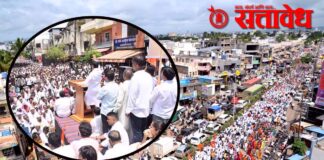 Team Sattavedh Thousands gathered to protest the threats : संगमनेरमध्ये मोर्चाद्वारे हल्लाबोल; बाळासाहेब थोरात यांनी केलं नेतृत्व SANGAMNER काँग्रेस नेते बाळासाहेब थोरात यांना मारण्याची धमकी देणाऱ्या तथाकथित संग्राम भंडारे याचा निषेध करण्यासाठी संगमनेर तालुका एकवटला. हजारो नागरिकांनी एकत्र शांती मोर्चा काढला. यावेळी संगमनेर तालुक्याचा विकास रोखून अशांतता निर्माण करणाऱ्या गावगुंडांचा बंदोबस्त करा असे आवाहन बाळासाहेब … Continue reading BALASAHEB THORAT : थोरांतांच्या धमकीचा निषेध करण्यासाठी हजारो एकवटले