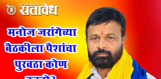 Team Sattavedh Laxman Haakes sensational allegations ; लक्ष्मण हाकेंचा सनसनाटी आरोप, आंदोलना आधीच खळबळ Mumbai : मराठा आरक्षणासाठी लढा देणारे आंदोलक नेते मनोज जरांगे पुन्हा संघर्षाच्या मैदानात उतरण्याच्या तयारीत आहेत. २९ ऑगस्टला मुंबईत होणाऱ्या मराठा समाजाच्या मोर्चाची हाक त्यांनी दिली असून, हा मोर्चा मागील मोर्चापेक्षा पाचपट मोठा असेल असा इशाराही त्यांनी दिला आहे. यामुळे राज्यातील … Continue reading Maratha movement : मनोज जरांगेच्या बैठकीला पैशांचा पुरवठा कोण करतो?
