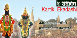 Team Sattavedh Two Deputy Chief Ministers, asking the Law Department : दोन उपमुख्यमंत्री, विधी विभागाला विचारणा Pandharpur : आषाढी एकादशीच्या उत्सवानंतर आता कार्तिकी एकादशीच्या तयारीला वेग आला असताना, यंदाच्या कार्तिकी महापूजेचा मान कोणाला मिळणार या प्रश्नाने पंढरीत नवचर्चेला तोंड फुटले आहे. राज्यात दोन उपमुख्यमंत्री असल्यानं यंदा पूजेचा सन्मान कोणाला द्यायचा शिवसेनेचे उपमुख्यमंत्री एकनाथ शिंदे की … Continue reading Kartiki Ekadashi : कार्तिकी एकादशीची महापूजा कोण करणार?