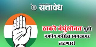 Team Sattavedh Leaders make unanimous demand to the high command : नेत्यांची हायकमांडकडे एकमुखाने मागणी Mumbai : मुंबई महानगरपालिकेच्या आगामी निवडणुकीत काँग्रेस पक्षाने स्वबळावर लढावे आणि ठाकरे बंधुंसोबत युती करू नये, अशी ठाम भूमिका मुंबई काँग्रेसच्या नेत्यांनी घेतली आहे. सोमवारी सांताक्रुझमधील गॅलेक्सी हॉटेलमध्ये झालेल्या काँग्रेसच्या महत्त्वाच्या बैठकीत ही भूमिका एकमुखाने मांडण्यात आली. या बैठकीला महाराष्ट्राचे … Continue reading Local body election : ठाकरे बंधुंसोबत युती नको; काँग्रेस स्वबळावर लढणार!