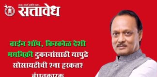 Team Sattavedh Deputy Chief Minister Ajit Pawar’s information in the Legislative Assembly : उपमुख्यमंत्री अजित पवार यांची विधानसभेत माहिती Nagpur : किरकोळ विदेशी मद्य विक्री आणि किरकोळ देशी मद्य विक्री दुकानांच्या बाबतीत स्थलांतरासाठी यापुढे नोंदणीकृत सोसायटीची ‘ना हरकत’ घेणे बंधनकारक राहील आणि या निर्णयाची राज्यात सर्वत्र अंमलबजावणी केली जाईल, अशी माहिती उपमुख्यमंत्री अजित पवार यांनी … Continue reading Winter session : वाईन शॉप, किरकोळ देशी मद्यविक्री दुकानांसाठी यापुढे सोसायटीची ‘ना हरकत’ बंधनकारक