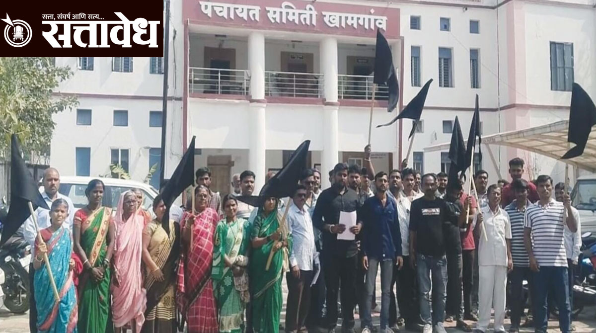 Khamgao खामगाव तालुक्यातील सुटाळा बु. ग्रामपंचायतीच्या कारभारावरून सध्या राजकीय वातावरण चांगलेच तापले आहे. ग्रामपंचायतीमध्ये झालेल्या कथित भ्रष्टाचार आणि नियमबाह्य कामांच्या निषेधार्थ संतप्त ग्रामस्थांनी सोमवारी पंचायत समितीवर धडक दिली. प्रशासनाच्या निष्क्रियतेचा निषेध करत ग्रामस्थांनी दाखवलेल्या काळ्या झेंड्यांमुळे पंचायत समितीच्या वर्तुळात मोठी खळबळ उडाली असून, हे प्रकरण आता स्थानिक राजकारणात सत्ताधारी आणि प्रशासकीय युतीवर प्रश्नचिन्ह निर्माण करणारे ठरले आहे.