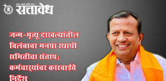 Team Sattavedh delays-in-issuing-birth-and-death-certificates-akola-municipal-standing-committee : माजी निबंधकांच्या नावाचा गैरवापर?, काही कर्मचाऱ्यांवर कारवाईचा प्रस्ताव Akola अकोला महानगरपालिका क्षेत्रातील नागरिकांना जन्म व मृत्यू दाखले मिळण्यात होणारा विलंब आणि गैरसोयीच्या तक्रारींच्या पार्श्वभूमीवर मनपा स्थायी समितीचे सभापती विजय अग्रवाल यांनी गुरुवारी जन्म-मृत्यू विभागाचा आढावा घेतला. महापौर शारदा रणजीत खेडकर, मनपा आयुक्त डॉ. सुनील लहाने, उपमहापौर अमोल गोगे आणि सभागृह नेते … Continue reading Akola municipal corporation : जन्म-मृत्यू दाखल्यांतील विलंबावर मनपा स्थायी समितीचा संताप; कर्मचाऱ्यांवर कारवाईचे निर्देश