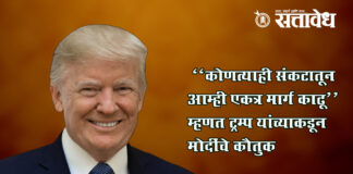 Team Sattavedh donald-trump-praises-narendra-modi-iran-us-tension-india-role-marathi-news : इराण-अमेरिका तणावाच्या पार्श्वभूमीवर विधान चर्चेत New Delhi : इराण आणि अमेरिका यांच्यात वाढलेल्या तणावाच्या पार्श्वभूमीवर अमेरिकेचे अध्यक्ष डोनाल्ड ट्रम्प यांनी भारताचे पंतप्रधान नरेंद्र मोदी यांच्याबद्दल केलेल्या वक्तव्यामुळे आंतरराष्ट्रीय स्तरावर चर्चा रंगली आहे. मध्यपूर्वेतील परिस्थिती गंभीर होत असताना भारताने शांततेची भूमिका घेतली असताना ट्रम्प यांच्या या विधानाकडे विशेष लक्ष वेधले जात आहे. … Continue reading Trump praises Modi : “कोणत्याही संकटातून आम्ही एकत्र मार्ग काढू” म्हणत ट्रम्प यांच्याकडून मोदींचे कौतुक