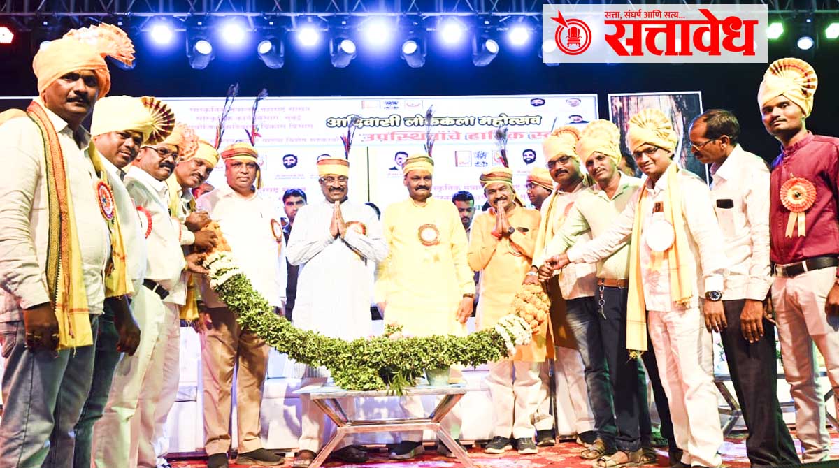 राज्याचा सांस्कृतिक कार्य विभाग, आदिवासी विकास विभाग आणि चंद्रपूर जिल्हाधिकारी कार्यालय यांच्या संयुक्त विद्यमाने आदिवासी लोककला महोत्सवाचे कोरपना येथे आयोजन करण्यात आले. या महोत्सवाच्या उद्घाटन सोहळ्यात ते बोलत होते. यावेळी आमदार सुधीर मुनगंटीवार, आदिवासी विकास मंत्री डॉ. अशोक उईके, आमदार देवराव भोंगळे देखील उपस्थित होते.