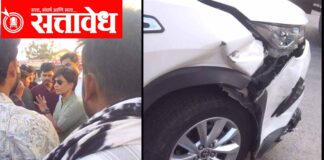 Team Sattavedh accident involving the vehicle of Congress office-bearers; Supervisor Sangeeta Beniwal narrowly escaped : तुमसरची बैठक आटोपून नागपूरला येताना घडली घटना, जीवितहानी टळली Nagpur नागपूर-तुमसर मार्गावरील खापा चौकात काँग्रेस पदाधिकाऱ्यांच्या वाहनाचा भीषण अपघात झाल्याची घटना समोर आली आहे. या अपघातात काँग्रेसच्या राजस्थानमधील पर्यवेक्षिका संगिता बेनिवाल आणि नागपूरच्या नेत्या कुंदा राऊत या बालंबाल बचावल्या असून, … Continue reading Accident of congress leader : काँग्रेस पदाधिकाऱ्यांच्या वाहनाचा भीषण अपघात, पर्यवेक्षिका संगीता बेनिवाल थोडक्यात बचावल्या