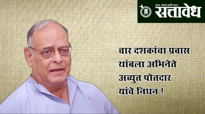 Thane : मराठी आणि हिंदी चित्रपटसृष्टीतील ज्येष्ठ अभिनेते अच्युत पोतदार यांचे निधन झाले आहे. ठाण्यातील हॉस्पिटलमध्ये वयाच्या 91 व्या वर्षी त्यांनी अखेरचा श्वास घेतला. त्यांच्या निधनाने चित्रपटसृष्टीवर शोककळा पसरली आहे.
