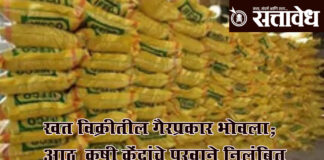 Team Sattavedh Irregularities in fertilizer sales exposed; licences of eight agri centres suspended : खरीपपूर्वी प्रशासनाचा धडक निर्णय; नियमभंग करणाऱ्यांना इशारा Buldhana जिल्ह्यातील काही कृषी सेवा केंद्रांमध्ये रासायनिक खत विक्रीत अनियमितता होत असल्याचे उघड झाल्यानंतर कृषी विभागाने धडक कारवाई करत आठ केंद्रांचे खत विक्री परवाने निलंबित केले आहेत. तसेच दोन कृषी केंद्र संचालकांना सक्त ताकीद … Continue reading Agricultural Service Centres : खत विक्रीतील गैरप्रकार भोवला; आठ कृषी केंद्रांचे परवाने निलंबित