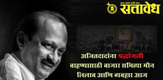 Team Sattavedh APMCs across the state remain shut to pay tribute : पुणे, नाशिक, अहिल्यानगरसह प्रमुख बाजारपेठांत शुकशुकाट; शेतकऱ्यांना माल न आणण्याचे आवाहन Pune उपमुख्यमंत्री अजित पवार यांच्या अकाली निधनामुळे संपूर्ण महाराष्ट्र शोकाकुल असून, त्यांच्या सन्मानार्थ राज्यातील बहुतांश कृषी उत्पन्न बाजार समित्यांनी (APMC) गुरुवारी आपले व्यवहार पूर्णपणे बंद ठेवण्याचा निर्णय घेतला आहे. अर्थमंत्री आणि उपमुख्यमंत्री … Continue reading Ajit Pawar Death News : अजितदादांना श्रद्धांजली वाहण्यासाठी बाजार समित्या ‘मौन’; लिलाव आणि व्यवहार आज पूर्णपणे बंद