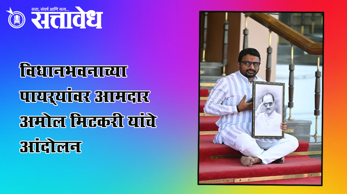 Protest by MLA Amol Mitkari on the steps of the legislature : अजित पवार यांच्या मृत्यूमागील सत्य उघड करण्यासाठी विधानमंडळात तातडीच्या चर्चेची मागणी