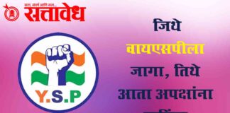 Team Sattavedh BJP snaps political ties with the Yuva Swabhiman Party : भाजपाने युवा स्वाभिमान पक्षाशी राजकीय संबंध पूर्णतः तोडले Amravati महानगरपालिका निवडणुकीच्या पार्श्वभूमीवर भारतीय जनता पार्टी आणि युवा स्वाभिमान पक्ष (वायएसपी) यांच्यातील राजकीय समन्वय अखेर पूर्णतः संपुष्टात आल्याचे स्पष्ट झाले आहे. ज्या प्रभागांमध्ये यापूर्वी भाजपाने युवा स्वाभिमान पक्षासाठी जागा सोडल्या होत्या, त्या ठिकाणी आता … Continue reading Amravati Municipal Corporation : जिथे वायएसपीला जागा, तिथे आता अपक्षांना पाठिंबा