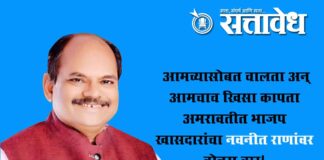 Team Sattavedh Amravati Municipal Election 2026 : भाजप-युवा स्वाभिमान युती तुटल्यानंतर संघर्षाचा भडका; बोंडे आणि पोटे-पाटलांचा ‘डबल ढोलकी’ प्रवृत्तीवर हल्ला Amravati अमरावती महानगरपालिका निवडणुकीचा प्रचार अंतिम टप्प्यात असताना भारतीय जनता पक्षातील अंतर्गत धुसफूस आता चव्हाट्यावर आली आहे. सोमवारी साईनगर येथे भाजप उमेदवारांच्या प्रचारासाठी आयोजित सभेत राज्यसभा खासदार डॉ. अनिल बोंडे आणि माजी राज्यमंत्री प्रवीण पोटे … Continue reading Anil Bonde : “आमच्यासोबत चालता अन् आमचाच खिसा कापता”; अमरावतीत भाजप खासदारांचा नवनीत राणांवर बोचरा वार!