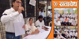 Team Sattavedh Opposition holds a symbolic municipal corporation session in Akola Municipal Corporation : १६ नगरसेवकांच्या निलंबनाचे पडसाद; अधिकृत सभेवर विरोधकांचा बहिष्कार Akola महापालिकेतील १६ नगरसेवकांच्या निलंबनाचे पडसाद शुक्रवारी उमटले. सत्ताधाऱ्यांच्या धोरणांचा निषेध करत विरोधी गटाने अधिकृत सभेवर बहिष्कार टाकला आणि विरोधी पक्षनेत्याच्या कक्षाबाहेर आपली ‘प्रतिकात्मक सभा’ भरवली. या अनोख्या आंदोलनाद्वारे विरोधकांनी सत्ताधाऱ्यांच्या मनमानी कारभाराची … Continue reading Akola Municipal corporation : अकोल्यात ‘समांतर’ महापालिका; महापौरांना चिठ्ठी अन् विरोधकांना ‘पडीत वॉर्ड’, विरोधकांनी सत्ताधाऱ्यांना झाडले