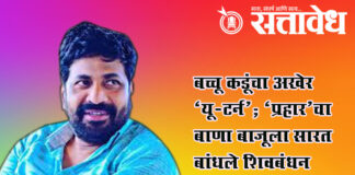 राजेश चरपे (संपादक) Bacchu kadu joins Eknath shinde Shivsena ahead of legislative election : शेतकरी, दिव्यांगाना न्याय मिळवून देण्यासाठी स्वगृही परत आल्याची प्रतिक्रिया Nagpur आमदार व्हायचे म्हणून शिवसेनेत जाणार नाही आणि प्रहारचे अस्तित्व संपू देणार नाही , अशी आक्रमक भूमिका घेणारे प्रहार जनशक्ती संघटनेचे प्रमुख बच्चू कडू यांनी अखेर मोठा राजकीय ‘यू-टर्न’ घेतला आहे. मुख्यमंत्री … Continue reading Bacchu kadu : बच्चू कडूंचा अखेर ‘यू-टर्न’; ‘प्रहार’चा बाणा बाजूला सारत बांधले शिवबंधन