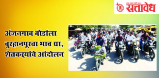 Team Sattavedh Demand to Give Anjangaon Board the Same Rate as Burhanpur : बुलढाण्यात केळी उत्पादकांचे प्रशासनाला निवेदन Buldhana “केळी उत्पादक शेतकऱ्यांना न्याय मिळालाच पाहिजे,” असा ठाम आवाज बुलढाण्यात रविव घुमला. क्रांतिकारी शेतकरी संघटनेचे नेते रविकांत तुपकर यांच्या नेतृत्वाखाली शेकडो केळी उत्पादक शेतकरी जिल्हाधिकारी कार्यालयावर एकत्र येत अंजनगाव बोर्डातील केळीला बुरहानपूर–रावेर बोर्डाच्या प्रमाणे दर देण्याची … Continue reading Banana-Growing Farmers’ Protest : अंजनगाव बोर्डाला बुरहानपूरचा भाव द्या, शेतकऱ्यांचे आंदोलन