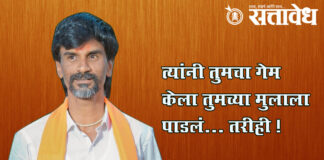 Team Sattavedh Jaranges big criticism of Raj Thackeray along with Chandrakant Patil, Rane : जरांगेंची राज ठाकरे सह चंद्रकांत पाटील, राणेंवर मोठी टीका Mumbai : मराठा आरक्षण आंदोलन पुन्हा पेटलेलं असतानाच मनसे प्रमुख राज ठाकरे यांच्या विधानावरून आंदोलनाचे नेतृत्व करणारे मनोज जरांगे पाटील संतापले आहेत. आझाद मैदानावर आंदोलकांना उद्देशून बोलताना त्यांनी राज ठाकरेंवर थेट निशाणा … Continue reading Big criticism : ‘त्यांनी’ तुमचा गेम केला तुमच्या मुलाला पाडलं… तरीही !