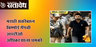 Team Sattavedh mira-bhayandar-marathi-compulsory-auto-drivers-bishnoi-gang-threat-rto-officer-marathi-news : रिक्षाचालकांच्या मुद्द्यावर तणाव वाढला, प्रशासन सतर्क Mumbai: मिरा-भाईंदर परिसरात रिक्षाचालकांसाठी मराठी भाषा अनिवार्य करण्याच्या मुद्द्यावरून वातावरण तापले असून या वादाला आता गंभीर वळण मिळाले आहे. राज्याचे परिवहन मंत्री प्रताप सरनाईक यांनी मुंबईत रिक्षा चालवण्यासाठी मराठी भाषा येणे बंधनकारक करण्यात येईल, असे जाहीर केल्यानंतर मराठी विरुद्ध अमराठी वाद पुन्हा उफाळून आला होता. … Continue reading Bishnoi gang threat : मराठी सक्तीवरून बिष्णोई गँगची आरटीओ अधिकाऱ्याला धमकी