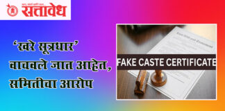Team Sattavedh Committee alleges ‘real masterminds’ are being protected : बोगस जात प्रमाणपत्र प्रकरणात आरक्षण बचाव संघर्ष समितीची कारवाईची मागणी Buldhana जिल्ह्यातील बोगस जात प्रमाणपत्र प्रकरणावर विधीमंडळाच्या हिवाळी अधिवेशनात विधानपरिषदेत जोरदार चर्चा झाल्यानंतरही खऱ्या सूत्रधारांवर अद्याप कारवाई झालेली नाही, असा गंभीर आरोप आरक्षण बचाव संघर्ष समितीने केला आहे. या प्रकरणी समाजकल्याण विभागातील काही अधिकाऱ्यांना ‘बळीचा … Continue reading Bogus caste certificate : ‘खरे सूत्रधार’ वाचवले जात आहेत, समितीचा आरोप