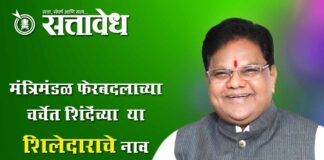 Team Sattavedh Efforts for cabinet entry of leaders in exileb : अज्ञातवासात असलेल्या नेत्यांचे ‘एन्ट्री’ साठी देव पाण्यात Mumbai : राज्यात मंत्रिमंडळ फेरबदलाच्या चर्चांना सध्या चांगलाच जोर चढलेला असताना, अनेक विद्यमान मंत्र्यांच्या पदांवर गंडांतर निर्माण झाले आहे. काही जुन्या चेहऱ्यांची पुन्हा एंट्री होण्याची शक्यता व्यक्त केली जात आहे. यामध्येच शिंदे गटाचे माजी मंत्री तानाजी … Continue reading Cabinet reshuffle : मंत्रिमंडळ फेरबदलाच्या चर्चेत शिंदेंच्या ‘ या’ शिलेदाराचे नाव