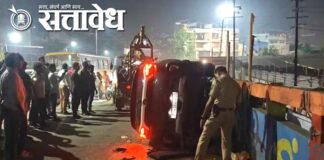 Team Sattavedh Four people died due to a heart attack suffered by the driver : ड्रायव्हरला आलेल्या हार्टअटॅकमुळे चार जणांचा मृत्यू Thane : अंबरनाथ पूर्व आणि पश्चिम भागाला जोडणाऱ्या पुलावर शुक्रवारी संध्याकाळी झालेल्या भीषण अपघाताने संपूर्ण परिसर हादरला. शिवसेना शिंदे गटाच्या उमेदवार किरण चौबे यांच्या कारने भरधाव वेगात समोरून येणाऱ्या अनेक दुचाकींना जोरदार धडक दिली. … Continue reading Candidates car accident : शिंदे गटाच्या उमेदवाराच्या कारची भरधाव धडक