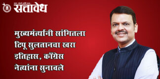Team Sattavedh Chief-Minister-recounted-the-true-history-of-Tipu-Sultan-rebukes-Congress-leaders : ब्रिटिशांच्या विरोधात लढले हे खरे, मात्र ते स्वतःचे राज्य वाचवण्यासाठी लढले Nagpur मागील आठवड्यात काँग्रेसचे प्रदेशाध्यक्ष हर्षवर्धन सपकाळ यांनी छत्रपती शिवाजी महाराजांसोबत टिपू सुलतानाशी तुलना केली होती. टिपू सुलतान हा देखील छत्रपतींनी एवढाच महान राजा होता. त्यांनाही महाराजांप्रमाणे सन्मान दिला जावा अशी मागणी केली होती. त्यावरून मोठा वाद उफाळून आला होता. … Continue reading CM Devendra Fadnavis : मुख्यमंत्र्यांनी सांगितला टिपू सुलतानचा खरा इतिहास, काँग्रेस नेत्यांना सुनावले