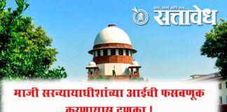 Team Sattavedh Order to transfer case from Special Sessions Court cancelled : विशेष सत्र न्यायालयातून खटला वर्ग करण्याचा आदेश रद्द Nagpur : माजी सरन्यायाधीश शरद बोबडे यांच्या आई मुक्ता बोबडे यांची १ कोटी ७४ लाख रुपयांची फसवणूक करणाऱ्या आरोपी तापस नंदुलाल घोषला मोठा धक्का बसला आहे. मुंबई उच्च न्यायालयाच्या नागपूर खंडपीठाने विशेष सत्र न्यायालयातून … Continue reading Crime news : माजी सरन्यायाधीशांच्या आईची फसवणूक करणाऱ्यास दणका !