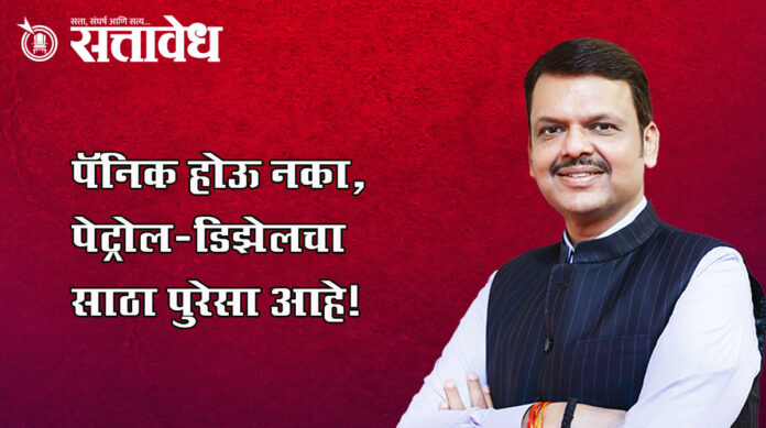 Devendra Fadnavis : पॅनिक होऊ नका, पेट्रोल-डिझेलचा साठा पुरेसा आहे!