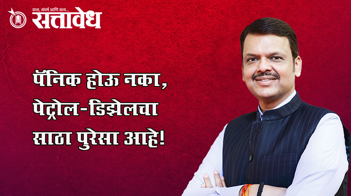 गेल्या काही दिवसांपासून पेट्रोल पंपांवर लागणाऱ्या रांगांवर स्पष्टीकरण देताना फडणवीस म्हणाले, ‘केंद्र सरकारने वारंवार स्पष्ट केले आहे की देशात पेट्रोल आणि डिझेलचा साठा पुरेसा अनेक शहरांत नागरिक घाबरून गरजेपेक्षा जास्त इंधन भरून घेत आहेत. यामुळे डिमांड आणि सप्लाय’चे गणित बिघडत असून टंचाईची स्थिती निर्माण होत आहे. दर महिन्याला लागणारा साठा उपलब्ध आहे. त्यामुळे नागरिकांनी रांगा लावू नयेत. तसेच, या परिस्थितीचा फायदा घेऊन कोणी काळाबाजार करत असेल, तर प्रशासन त्यांच्यावर कडक कारवाई करेल.’