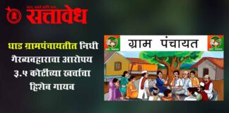 Team Sattavedh Protest by locking gram sevaks and members in the office : ग्रामसेवक व सदस्यांना कार्यालयात कोंडून आंदोलन; पंचायतीच्या कारभारावर गंभीर प्रश्नचिन्ह Buldhana १५व्या वित्त आयोगातून आलेल्या कोट्यवधीच्या निधीच्या खर्चाचा हिशेब न दिल्याने धाड ग्रामपंचायतीत वादाची ठिणगी पडली आहे. ग्रामसेवक विष्णू इंगळे यांच्याकडे वारंवार माहिती मागूनही प्रतिसाद न मिळाल्याचा आरोप करत ग्रामपंचायत सदस्यांनी गुरुवारी … Continue reading Dhad Grampanchayat : धाड ग्रामपंचायतीत निधी गैरव्यवहाराचा आरोप; ३.५ कोटींच्या खर्चाचा हिशेब गायब