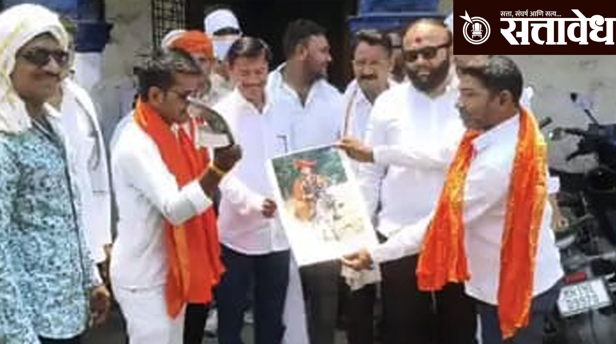 stage a protest by hitting the image of Dhirendra Krishna Shastri with slippers : पोलीस ठाण्यात धडक, फौजदारी कारवाई करण्याची केली मागणी