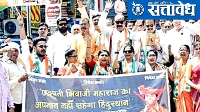 छत्रपती शिवाजी महाराज हे महाराष्ट्राचे आराध्य दैवत असून त्यांच्या संदर्भात केलेले वक्तव्य अपमानास्पद असल्याचा आरोप काँग्रेस पदाधिकाऱ्यांनी केला. या पार्श्वभूमीवर आंदोलन छेडण्यात आले.