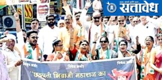 Team Sattavedh congress attack on BJP indirectly on dhirendra shastri statement : धीरेंद्र शास्त्री यांच्या वक्तव्यावरून काँग्रेसने डिवचले, अमरावतीत आंदोलन Amravati छत्रपती शिवाजी महाराजांविषयी कथित वक्तव्य केल्याच्या निषेधार्थ धीरेंद्र शास्त्री ऊर्फ बागेश्वर बाबा यांच्याविरोधात अमरावती शहर काँग्रेसने रविवारी राजकमल चौकात तीव्र आंदोलन केले. या वेळी घोषणाबाजी करत शास्त्री यांच्यावर गुन्हा दाखल करून त्यांना महाराष्ट्रात कायमस्वरूपी … Continue reading Dhirendra Shastri controversy : भागवत, गडकरी, फडणवीस यांच्या उपस्थितीत हिंमत कशी झाली