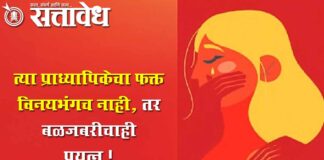 Team Sattavedh ‘That’ professor not only molested but also attempted to coerce : संविधान बचाओ आंदोलन संघटना पिडीतेसोबत ठामपणे उभी Nagpur : नागपुरातील डॉ. बाबासाहेब आंबेडकर महाविद्यालयात उच्च विद्याविभूषीत प्राध्यापिकेचा विनयभंग केल्याची घटना मागील काळात घडली होती. या घटनेचा समाजाच्या सर्व स्तरांतून निषेध करण्यात आला. दरम्यान काल (२२ ऑगस्ट) रोजी संविधान बचाओ आंदोलन या संघटनेचे … Continue reading Dr. Babasaheb Ambedkar College : ‘त्या’ प्राध्यापिकेचा फक्त विनयभंगच नाही, तर बळजबरीचाही प्रयत्न !