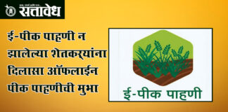 Team Sattavedh Relief for farmers; permission granted for offline crop inspection : ग्राम महसूल अधिकाऱ्याकडे अर्ज करून नोंदणी करण्याचे आवाहन Buldhana खरीप हंगाम २०२५ मध्ये विहित कालावधीत ई-पीक पाहणीची नोंद न होऊ शकलेल्या शेतकऱ्यांसाठी राज्य शासनाने दिलासादायक निर्णय घेतला आहे. महसूल व वन विभाग, महाराष्ट्र शासनाने १४ डिसेंबर २०२५ रोजी निर्गमित केलेल्या शासन निर्णयानुसार अशा … Continue reading E Crop Survey : ई-पीक पाहणी न झालेल्या शेतकऱ्यांना दिलासा; ऑफलाईन पीक पाहणीची मुभा