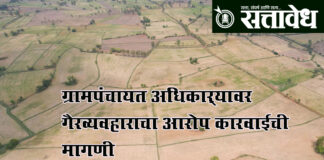 Team Sattavedh Allegation of malpractice against a Gram Panchayat official : ग्रामपंचायत अधिकाऱ्यावर गैरव्यवहाराचा आरोप; कारवाईची मागणी Sakharkherda शिंदी ग्रामपंचायतीतील एफ-क्लास सरकारी जमीन बेकायदेशीरपणे खाजगी व्यक्तीच्या नावे करून देत तसेच संबंधित व्यक्तीस घरकुलाचा लाभ मिळवून देत तत्कालीन ग्रामपंचायत अधिकाऱ्यांनी गंभीर गैरव्यवहार केल्याचा आरोप होत आहे. या प्रकरणी संबंधित अधिकाऱ्यावर कठोर शिस्तभंगात्मक आणि कायदेशीर कारवाई करावी, … Continue reading F-class land converted into private : एफ-क्लास जमीन ‘खाजगी’ करण्यात आली?