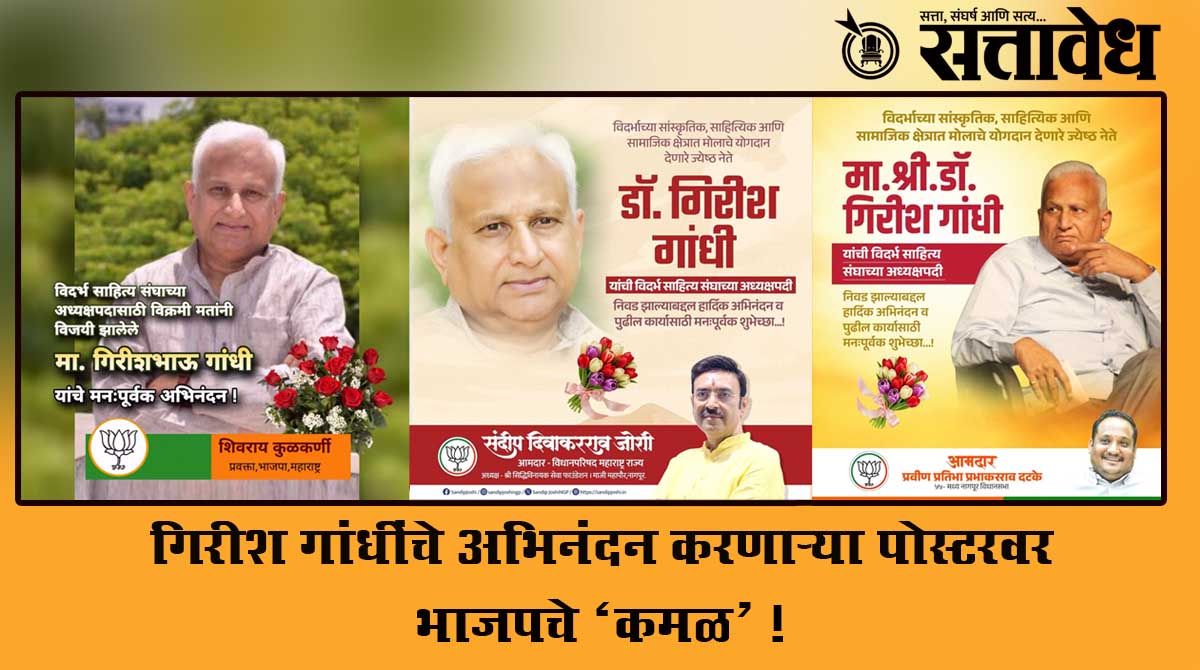 गिरीश गांधींच्या विजयानंतर सोशल मीडियावर भाजप कार्यकर्त्यांनी शुभेच्छांचा पाऊस पाडला. ज्यातील अनेकांचा साहित्याशी दुरान्वयेही संबंध नाही. शुभेच्छांमध्ये ‘कमळ’ चिन्हाचा झालेला वापर बरंच काही सांगून जातो. शरद पवारांचे ‘मानसपुत्र’ आणि यशवंतराव चव्हाणांचे पाईक म्हणवणारे गांधी, आता भाजपच्या छायेखाली वावरत आहेत. राष्ट्रवादीत असताना पक्षाची अवस्था बिकट झाल्यानंतर त्यांनी आपला मोर्चा भाजपकडे वळवल्याचे स्पष्ट होते.