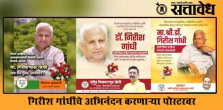 Team Sattavedh Bjp-leaders-congratulated-girish-gandhi-vidarbha-sahitya-sangh-election : भाजप नेत्यांकडून सोशल मीडियावर पोस्ट, साहित्यिकांचा ‘बळी’, राजकारण्यांची ‘बाजी’ Nagpur विदर्भ साहित्य संघाच्या निवडणुकीकडे संपूर्ण राज्याचे लक्ष लागले होते. ज्येष्ठ साहित्यिक आणि वर्षानुवर्षे सक्रिय असलेल्या सारस्वतांच्या हाती संघाची धुरा जाईल, ही आशा फोल ठरली आहे. ही लढाई ‘साहित्यिक विरुद्ध राजकारणी’ अशी रंगली होती, ज्यामध्ये अखेर राजकारण्यांनी बाजी मारली आहे. विदर्भातील ‘सर्वपक्षीय … Continue reading Girish Gandhi : गिरीश गांधींचे अभिनंदन करणाऱ्या पोस्टरवर भाजपचे ‘कमळ’ !