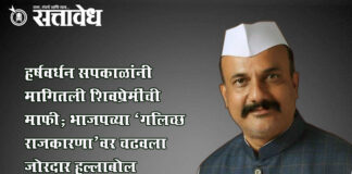 Team Sattavedh harshvardhan-sapkal-apologizes-to-shivpremi-slams-bjp-politics : छत्रपती शिवाजी महाराज माझे दैवत, भाजपचा अपप्रचार दंगली घडवण्यासाठीच; काँग्रेस प्रदेशाध्यक्षांची टीका Nagpur भाजपने माझ्या विधानातील एका शब्दाचा संदर्भ तोडून जाणीवपूर्वक विपर्यास केला आणि सोशल मीडियावर दिशाभूल करणारी मोहीम चालवली. मी जे बोललोच नाही, ते माझ्या तोंडी घालून छत्रपती शिवाजी महाराजांशी तुलना केल्याचा चुकीचा समज निर्माण करण्यात आला, असा घणाघाती आरोप … Continue reading Harshwardhan Sapkal : हर्षवर्धन सपकाळांनी मागितली शिवप्रेमींची माफी; भाजपच्या ‘गलिच्छ राजकारणा’वर चढवला जोरदार हल्लाबोल