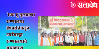 Team Sattavedh Shiv Sena Renames Sub-District Hospital as ‘Refer to Buldhana Hospital’ : डॉक्टरांच्या गैरहजेरीवर संताप; आठ दिवसांत सुधारणा न झाल्यास ‘ताला ठोको’चा इशारा Malkapur येथील उपजिल्हा रुग्णालयातील डॉक्टर आणि कर्मचाऱ्यांच्या निष्काळजीपणामुळे रुग्णांना भेडसावणाऱ्या अडचणींविरोधात शिवसेना आक्रमक झाली आहे. “रेफर टू बुलढाणा रुग्णालय” अशी नामफलक फडकावत शिवसेनेने प्रतीकात्मक आंदोलन छेडले. शिवसेना उपजिल्हाप्रमुख गजानन ठोसर यांच्या … Continue reading Health Department of Maharashtra : रेफर टू बुलढाणा रुग्णालय! शिवसेनेकडून उपजिल्हा रुग्णालयाचे नामकरण