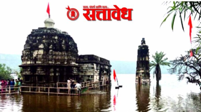 Lonar लोणार सरोवरातील कमळजा माता मंदिराला वाढत्या जलपातळीचा वेढा पडला आहे. मंदिराचा ओटा पूर्णपणे पाण्याखाली गेला असून मुख्य उंबरठ्यालाही पाणी लागले आहे. खालून झरे फुटल्याने गाभाऱ्यात पाणी शिरले आहे. त्यामुळे मंदिराकडे जाणाऱ्या पारंपरिक वाटा बंद झाल्या आहेत. मात्र वरच्या बाजूने असलेल्या गुप्त मार्गाला वन्यजीव विभागाने खुला केल्याने भाविक खडतर आणि निसरड्या वाटेने दर्शनासाठी गर्दी करत आहेत. महिलांपासून लहान मुलांपर्यंत सर्वच भक्त देवीची आराधना करण्यासाठी धाडसाने मंदिरात पोहोचत आहेत.