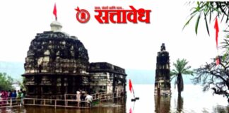 Team Sattavedh Kamljā Mata Temple surrounded by water : मंदिराकडे जाणाऱ्या पारंपरिक वाटा बंद, खडतर मार्गाने प्रवास Lonar लोणार सरोवरातील कमळजा माता मंदिराला वाढत्या जलपातळीचा वेढा पडला आहे. मंदिराचा ओटा पूर्णपणे पाण्याखाली गेला असून मुख्य उंबरठ्यालाही पाणी लागले आहे. खालून झरे फुटल्याने गाभाऱ्यात पाणी शिरले आहे. त्यामुळे मंदिराकडे जाणाऱ्या पारंपरिक वाटा बंद झाल्या आहेत. मात्र … Continue reading Heavy Rain : पाण्याच्या वेढ्यात कमळजा माता मंदिर; तरीही भाविकांचा ओढा