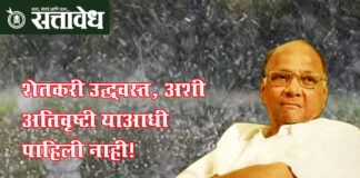 Team Sattavedh Sharad Pawar demands immediate help to farmers : शेतकऱ्यांना तातडीने मदत करण्याची शरद पवारांचा मागणी Pune: महाराष्ट्रात गेल्या काही दिवसांपासून मुसळधार पावसाने अक्षरशः थैमान घातले आहे. सोलापूर, लातूर, धाराशिव, जालना, परभणी आणि दक्षिण अहमदनगर या भागांत अतिवृष्टीमुळे शेतीचे अतोनात नुकसान झाले आहे. अनेक ठिकाणी पिके जमीनदोस्त झाली आहेत, तर शेतकऱ्यांचे संसार उद्ध्वस्त झाले … Continue reading Heavy Rain : शेतकरी उद्ध्वस्त, “अशी अतिवृष्टी याआधी पाहिली नाही!”