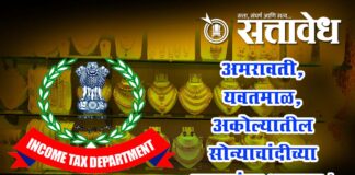 Team Sattavedh Raids on gold and silver shops in Amravati, Yavatmal, Akola :आयकर विभागाच्या अधिकाऱ्यांकडून तपासणी सुरू Amravati : आयकर विभागाने पश्चिम विदर्भातील तीन जिल्ह्यांमध्ये आज (१४ मे) सकाळपासून धाडसत्र सुरू केले आहे. सोन्याचांदीच्या दुकानांना विभागाच्या चमूने पूर्णपणे घेरले आहे. अधिकारी दुकांनामध्ये बसून कसून तपासणी करत आहेत. ज्वेलर्स दुकानदारांकडून मोठ्या प्रमाणात गैरव्यवहार करण्यात आल्याची माहिती … Continue reading Income Tax Department : अमरावती, यवतमाळ, अकोल्यातील सोन्याचांदीच्या दुकानांवर धाडसत्र !