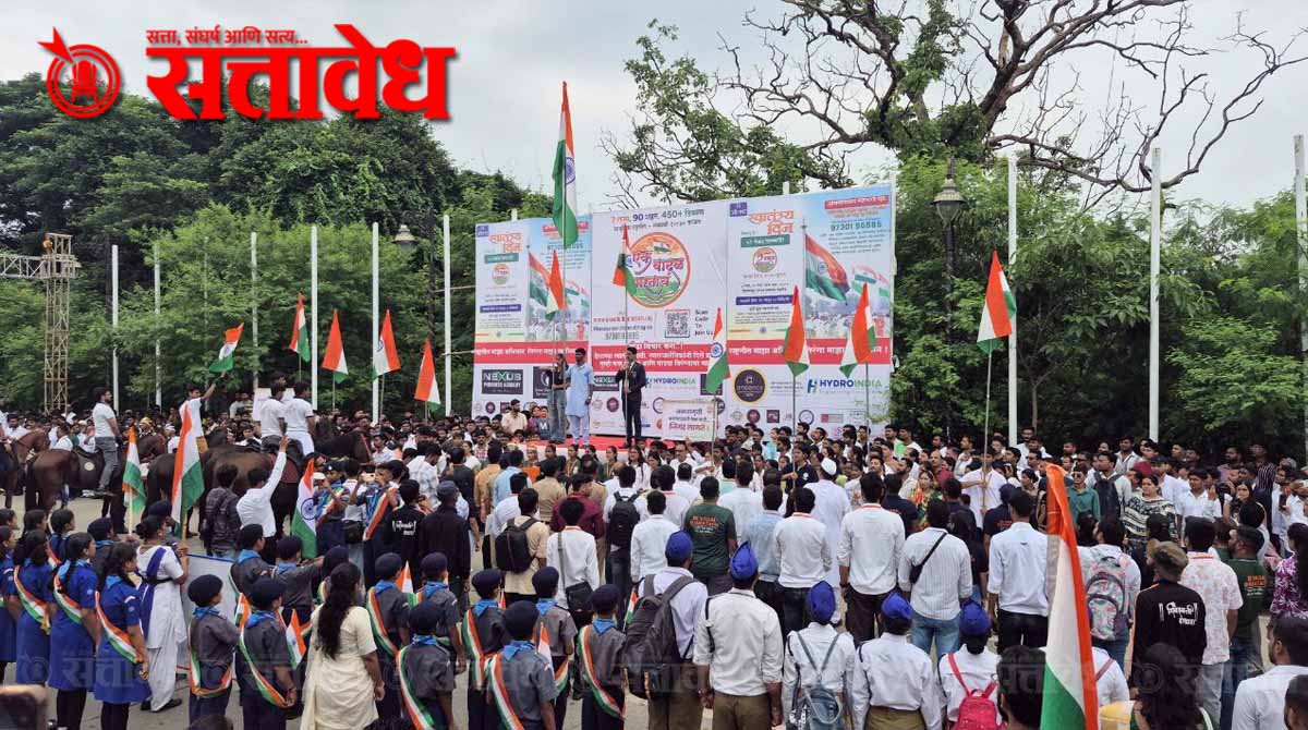 कार्यक्रमाची सुरुवात सकाळी ८ वाजता ढोलताशा पथकांच्या ऊर्जापूर्ण गजराने झाली. यानंतर विवेकानंद पब्लिक स्कूलच्या विद्यार्थ्यांनी शानदार स्काउट-गाईड परेड आणि लेझीम सादर करून उपस्थितांची मने जिंकली. लालसिंग स्पोर्ट्स अकादमीच्या खेळाडूंनी तिरंग्यासह स्केटिंगची चित्तथरारक प्रात्यक्षिके दाखवली, तर शिवशक्ती आखाड्याच्या कलाकारांनी मर्दानी खेळांचे प्रदर्शन केले. कार्यक्रमाचे केंद्रबिंदू असलेला २२ फुटांचा भव्य राष्ट्रध्वज सर्वांचे लक्ष वेधून घेत होता.
