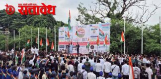 Team Sattavedh Nagpur residents respond to Devendra Fadnavis and Nitin Gadkari’s appeal : हजारो नागपूरकरांनी एकत्र राष्ट्रगीत गाऊन रचला इतिहास Nagpur : आज १५ ऑगस्ट रोजी हजारो नागपूरकर फुटाळा तलावावर एकत्र जमले आणि स्वातंत्र्य दिनाचा ‘उत्सव’ साजरा केला. या कार्यक्रमाचे मुख्य आकर्षण म्हणजे सकाळी ठीक १०:३० वाजता पार पडलेला ‘सामूहिक राष्ट्रगान’ हा क्षण होता, जेव्हा … Continue reading Independence Day : ‘सुटी नव्हे उत्सव साजरा करू या’, फुटाळा तलावावर गरजले राष्ट्रप्रेमाचे वादळ !