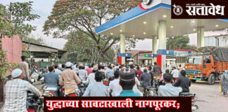 Team Sattavedh Nagpur people get panicked by the petrol crisis, long que on petrol pump : अनेक ठिकाणचा साठा संपला, पेट्रोल-डिझेल संपल्याचे फलक झळकले. Nagpur अमेरिका आणि इराण यांच्यात युद्धाचा भडका उडाल्याने त्याचे थेट पडसाद आता स्थानिक स्तरावर उमटू लागले आहेत. गॅस सिलिंडरच्या तुटवड्यानंतर आता नागपूर शहरातील पेट्रोल पंपांवर वाहनधारकांच्या लांबच लांब रांगा लागल्याचे चित्र … Continue reading Iran War update : युद्धाच्या सावटाखाली नागपूरकर; गॅसनंतर आता पेट्रोल पंपांवरही रांगा